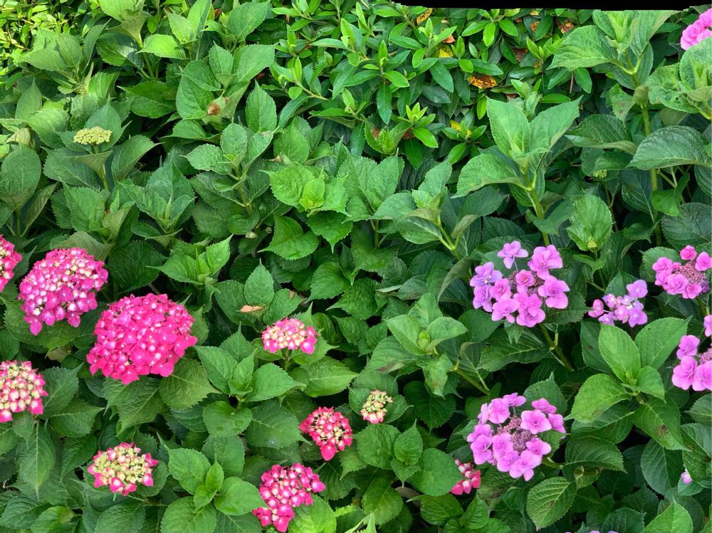 紫陽花が、ピンクや赤や青や白色を纏い小雨ふる中カラフルに飾ってくれてます😄
