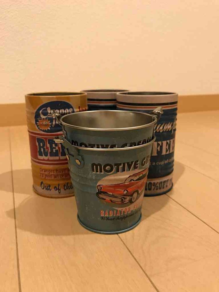 キャンドゥで多肉栽培用にブリキ缶5個購入