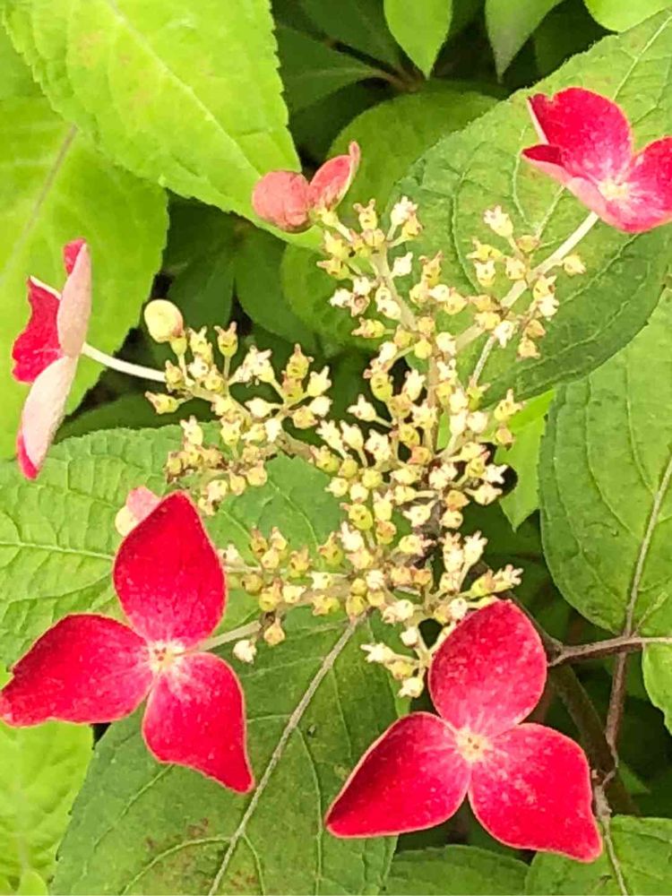 あら素敵ですね💓この赤は何処に咲いてても目に飛び込んできますね💞沢山の山紫陽花が見れるなんてなかなか無いですよね〜🎶素敵な処を見つけましたね‼️