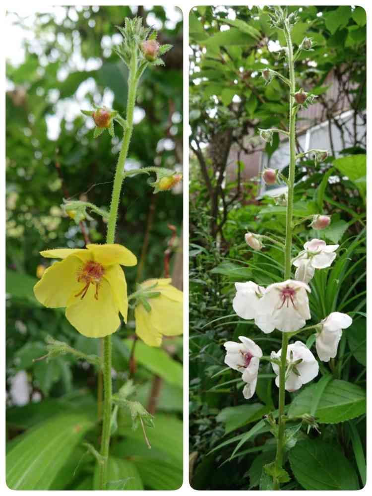 母の山野草からエサシソウの黄花💛白花(別名シロバナモウズイカ)♡