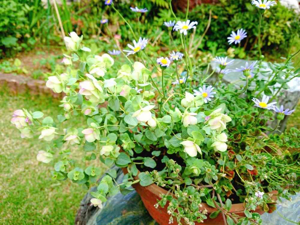 可愛いオレガノケントビューティーをお迎えしたので、ブルーデージーとブラッククローバーと寄せ植えしてみました😊🌼