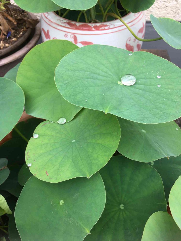 蓮の葉が、水を弾きつつ水滴を残すのが好きです。