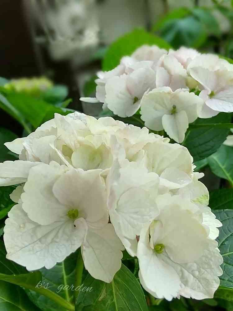 純白🤍~~後ろの紫陽花おめかししてるね😚💗