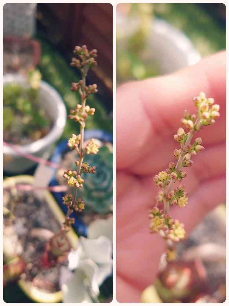 ちっさいお花が咲いています。葉っぱが半分枯れてるような・・