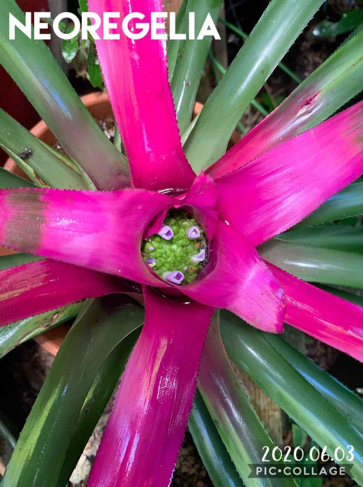 ネオレゲリアの花って真ん中にこんな風に付くんですね‼️👀✨すごっ〜い😆💕