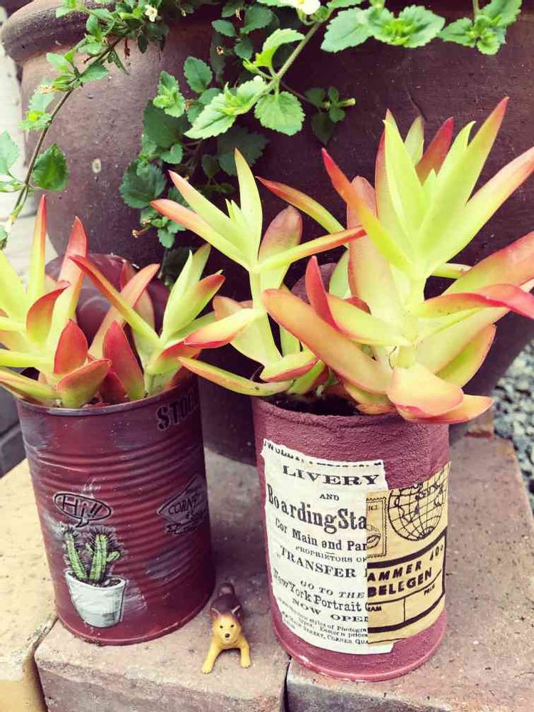 リメ缶に火まつりを植えてみました😄色鮮やかで目立ちますね✨