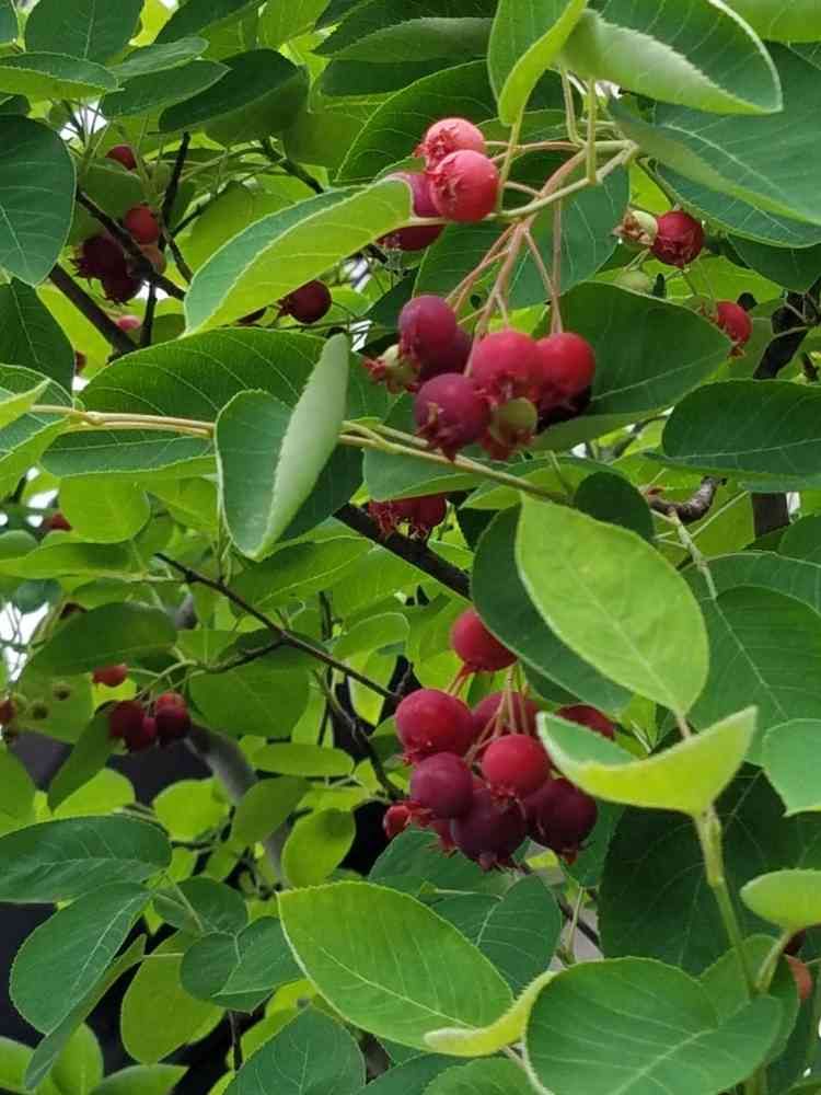 一週間の留守中にジュンベリーが色づいていてビックリ‼ 早速収穫😃🎶。今からジャムにします。種があり少々面倒ですが私の初夏の楽しみ✨です。