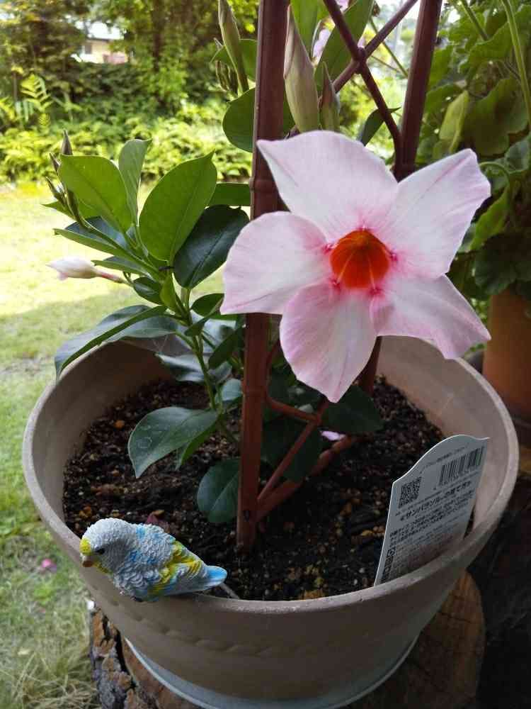 サンパラソル❣ミルキーピンク中輪🌺🐦軒下ガーデンニング小さな鉢植え🌱〜三輪咲いた(*´ω`*) 。