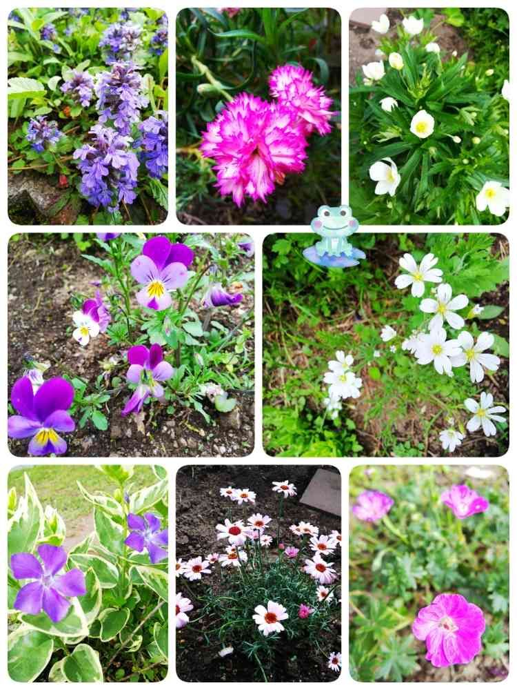 真ん中左側のビオラは、夫の実家の裏でいろんな所から顔を出していたのをいただいてきました😆