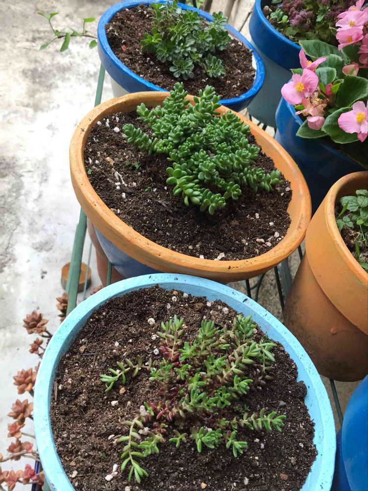 今日花壇にヒマワリと早咲きコスモスを植えたくて、多肉ちゃん達を植木鉢にお引越し✨