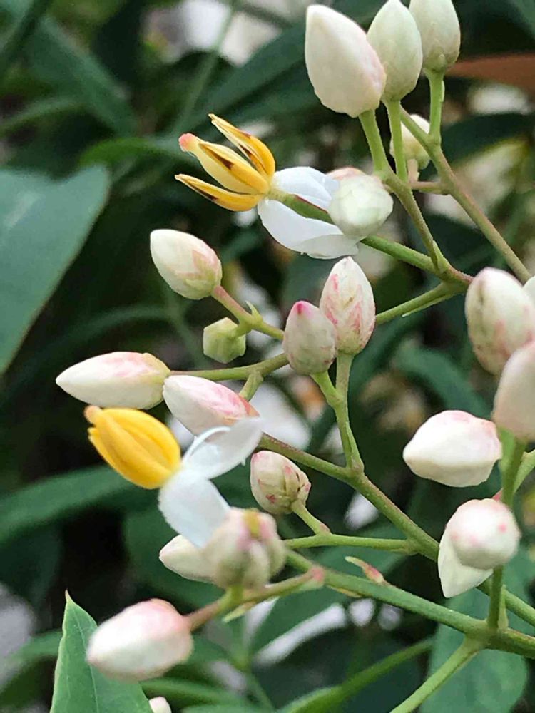 ナンテンの花、初めてよく見ました。白い粒々ばかりだと思っていました。ありがとうございます。、