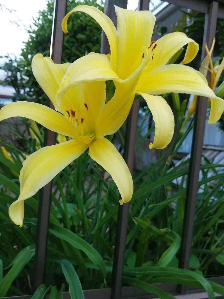 夕方フェンスから2輪の黄色い花✨💛