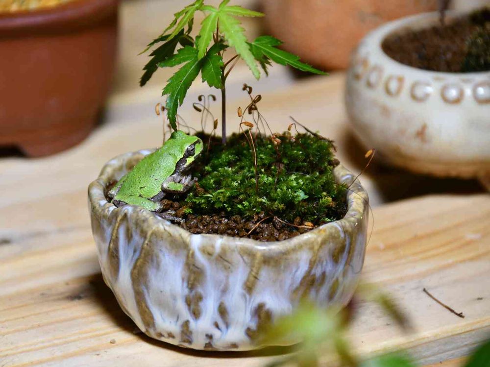 バルコニー/ベランダ,ミニ盆栽,アマガエルの投稿画像