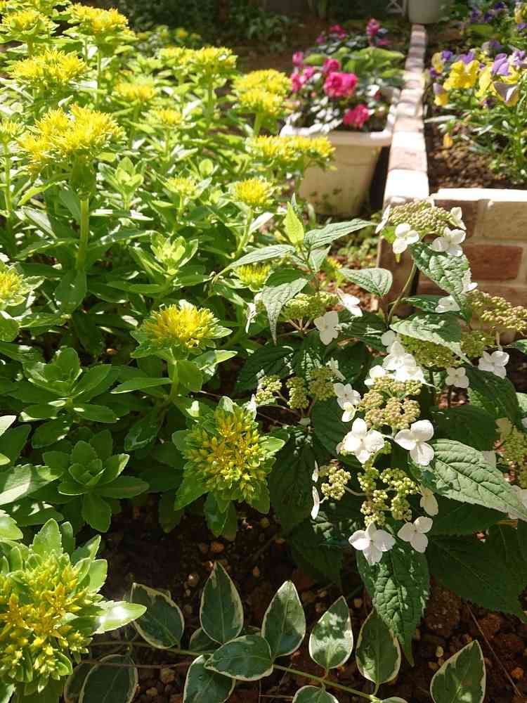 小さな庭,キリンソウ,山アジサイ 紅の投稿画像