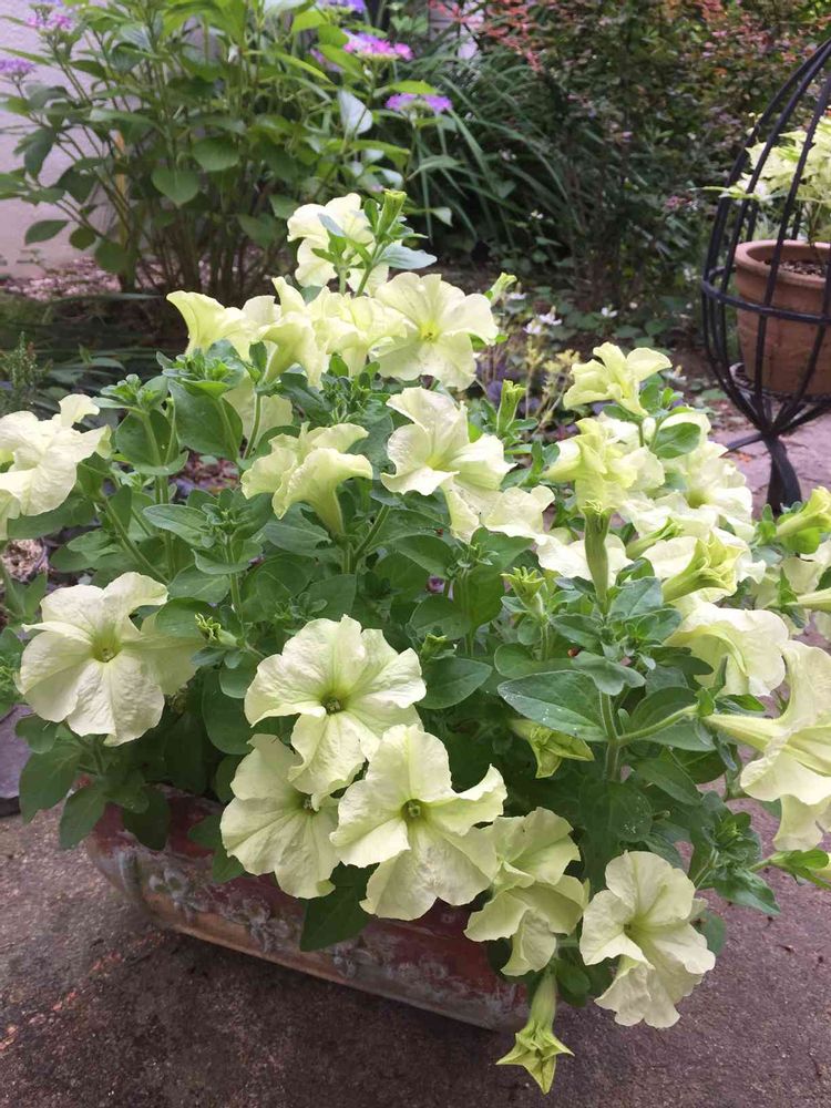 4月半ばに植えた一株のペチュニア。こんもりして一度切り戻した後の二度目のこんもり。今シーズン、あと何回楽しめるでしょう。