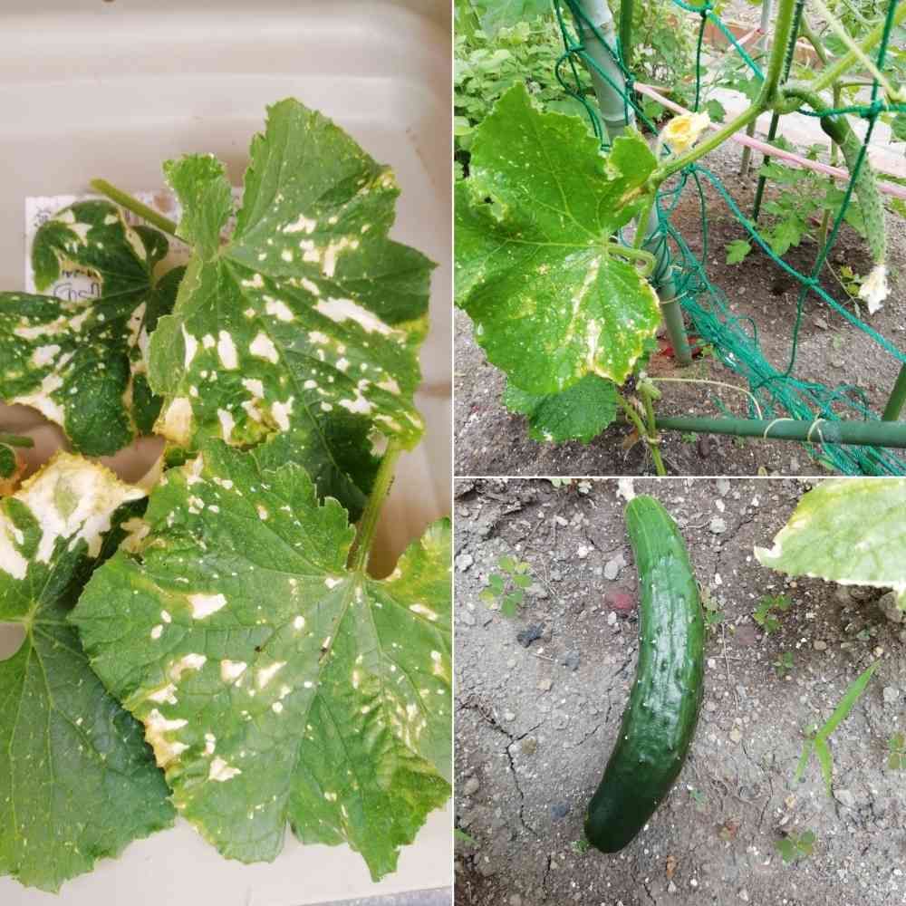 キュウリが実りましたが、葉っぱが〰️( ´゚д゚)