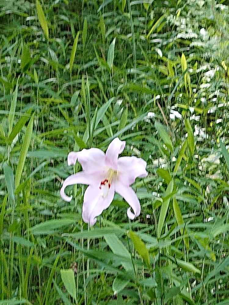 周りの笹が雨のように見えて、雨の中で咲いているのかと思いました😆