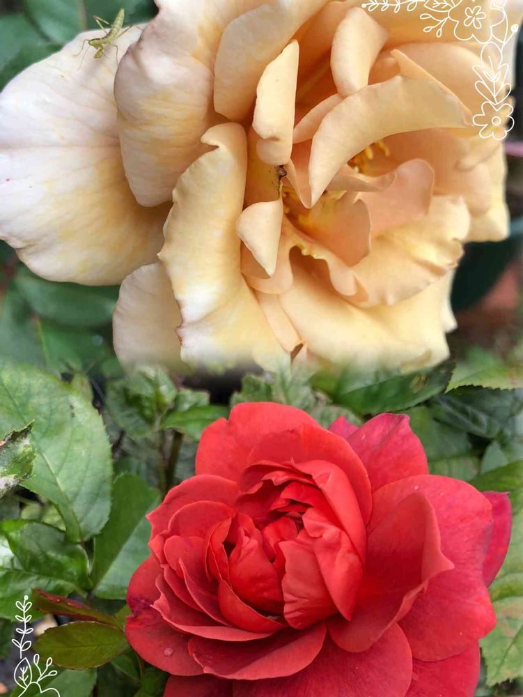 さんのお庭にカマキリの赤ちゃんかな?👶💕ニュアンスカラーのバラも素敵✨