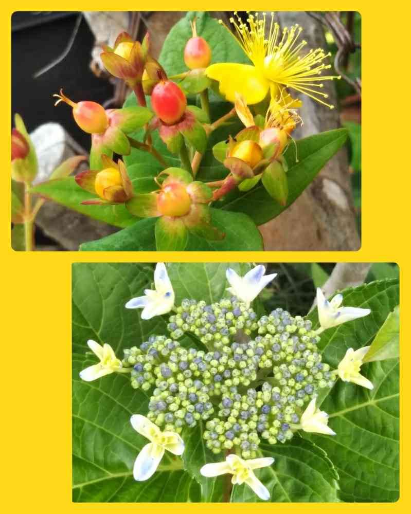 ヒペリカムってこんなにすぐ赤く実になるんだ、知らなかったよ!コンペイトウのフリッフリッもかわいい💕