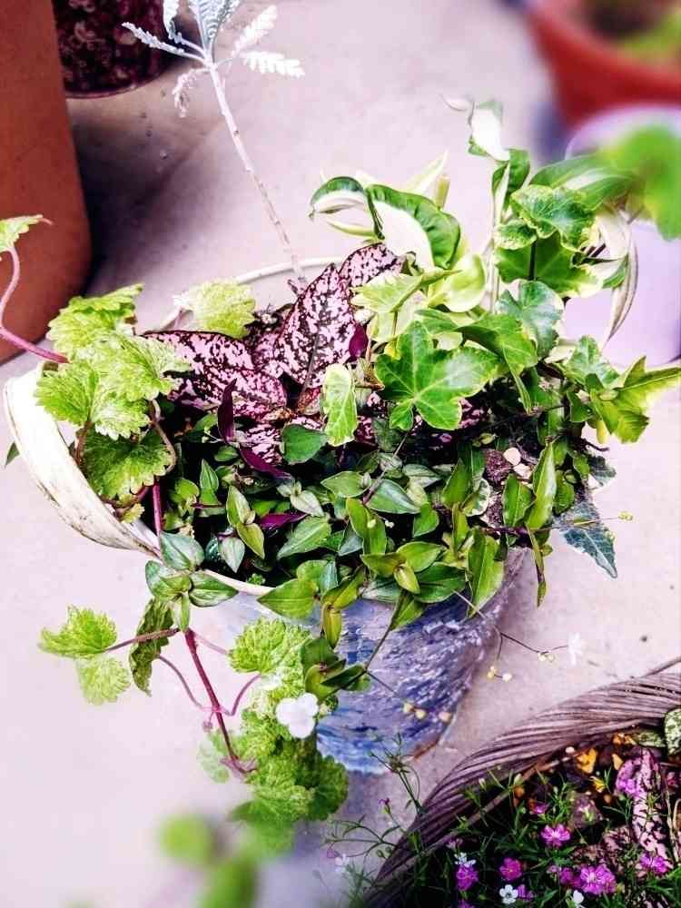 葉だけでも色んな色があってきれいな寄せ植えで素敵ですね✨