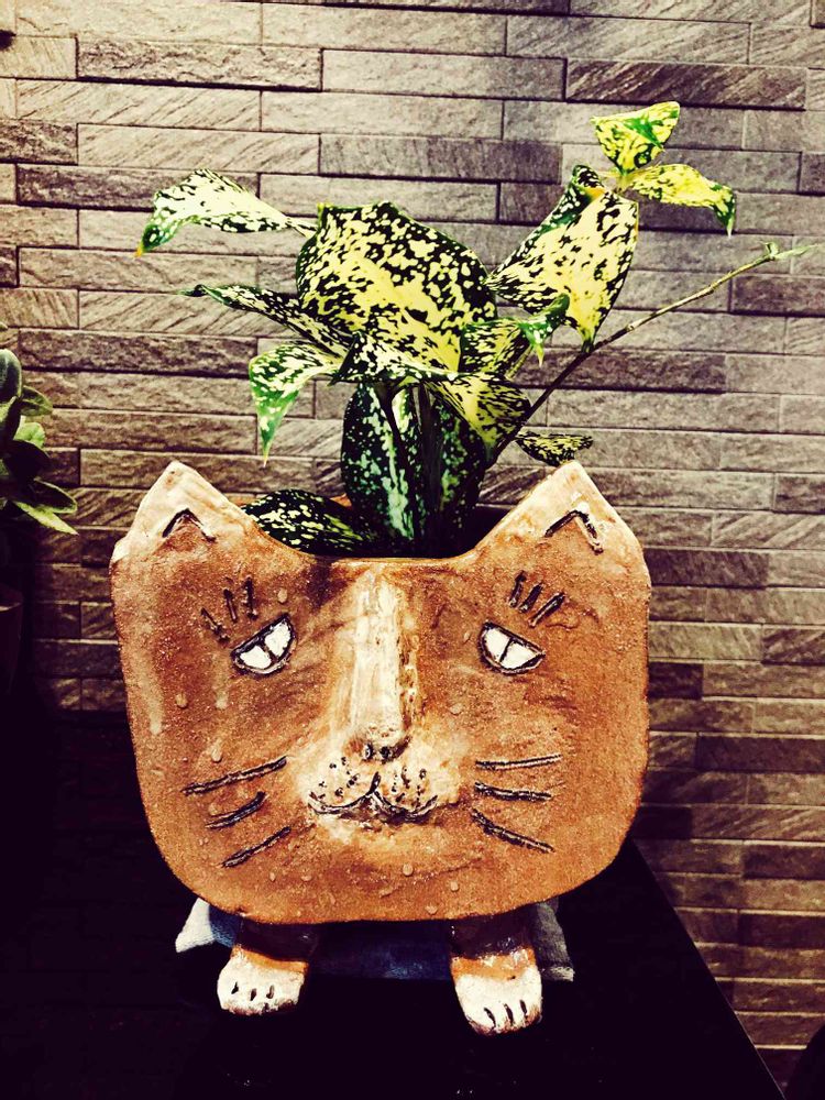 自作のブサ猫鉢で大きく育ってくれたらいいなぁ