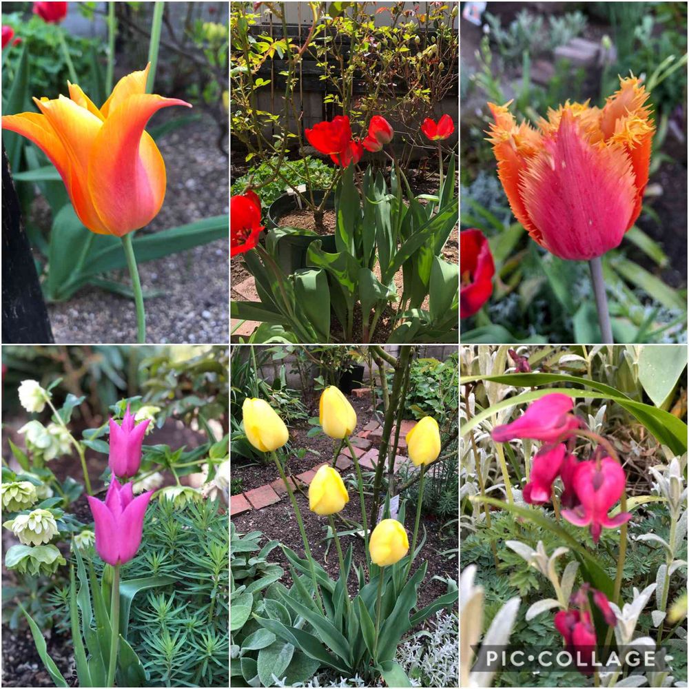 右上のチューリップ🌷四年ぶりなんよ😆消えたと思ったわ🤣タイツリ草!毎年出てきて可愛いよ💕