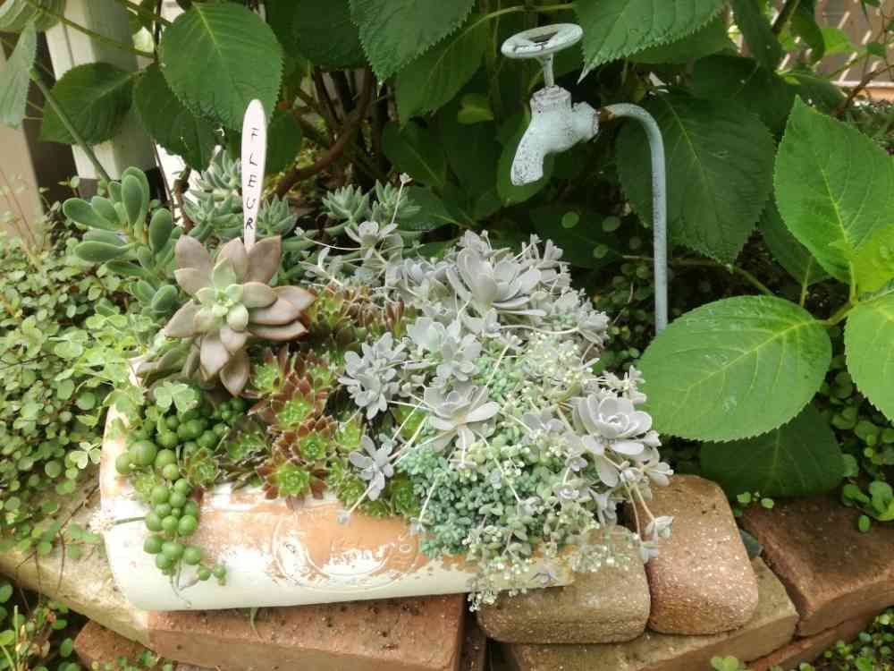 小さな庭,多肉植物 寄せ植え,アンティークの投稿画像