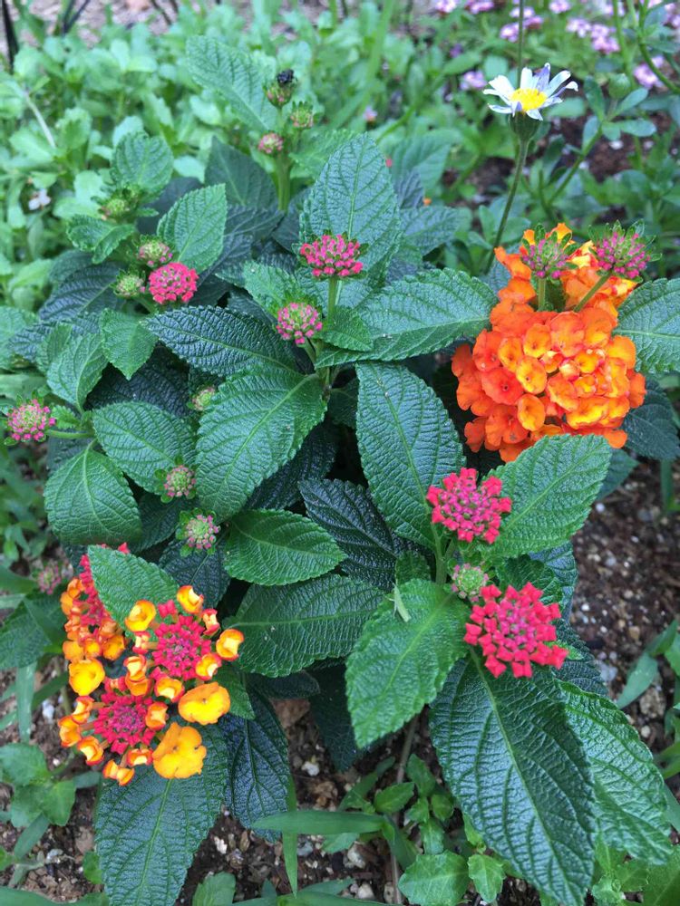 ランタナンテのオレンジが、咲き始めました😊花色が黄から赤へ変わるらしいです❣️まるで花火みたいだなぁ🎇蕾もまた良しです👌