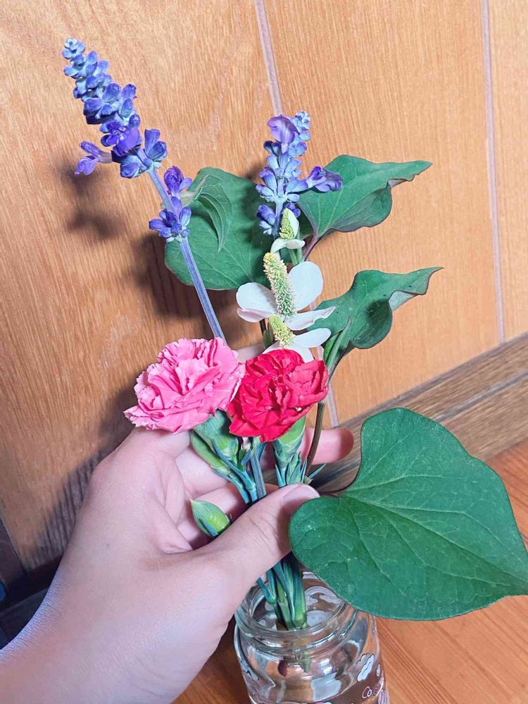 お庭のお花で簡単な花束〜💐