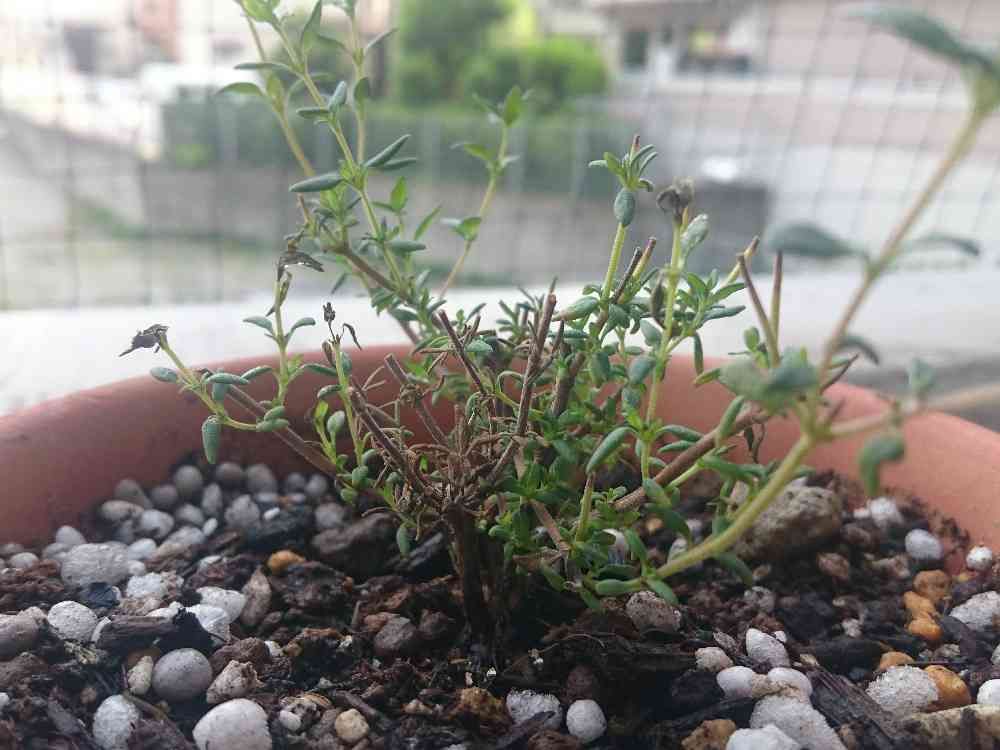 植え替えて剪定したタイムが一部分枯れてもうた😭😭