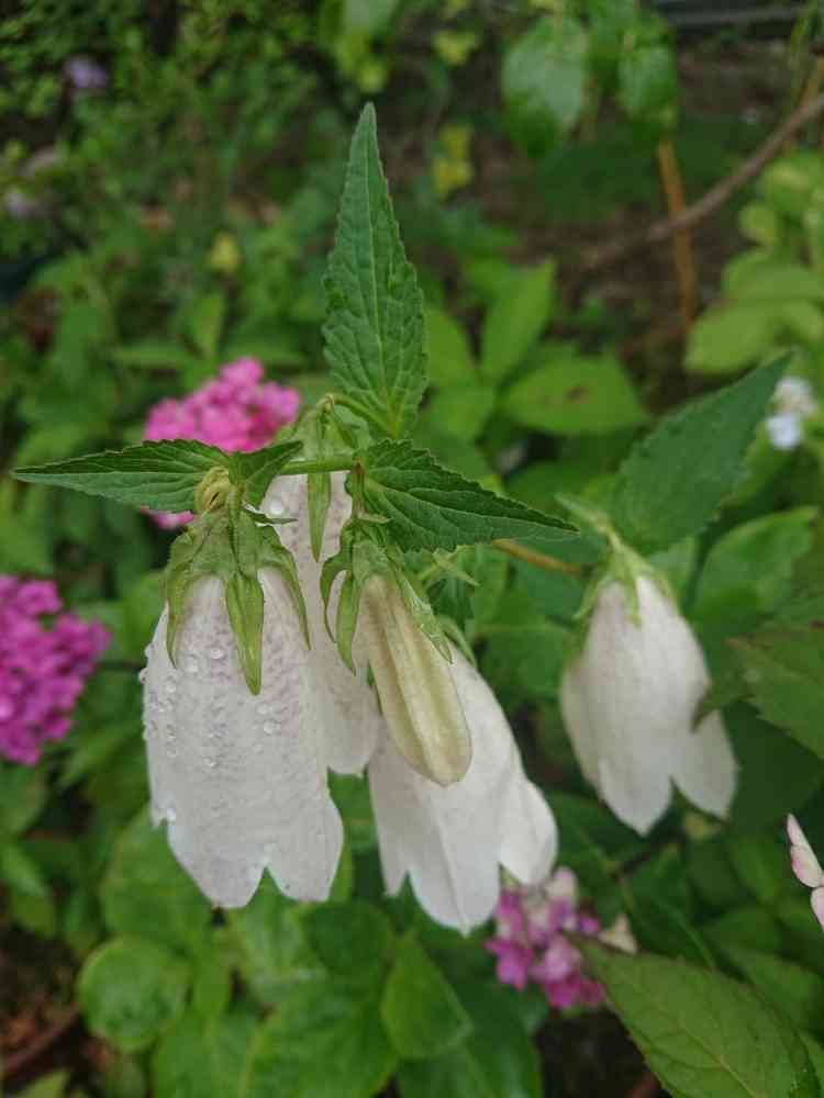 白のホタル袋が咲きました。中は少しだけ、紫がかった模様があります。