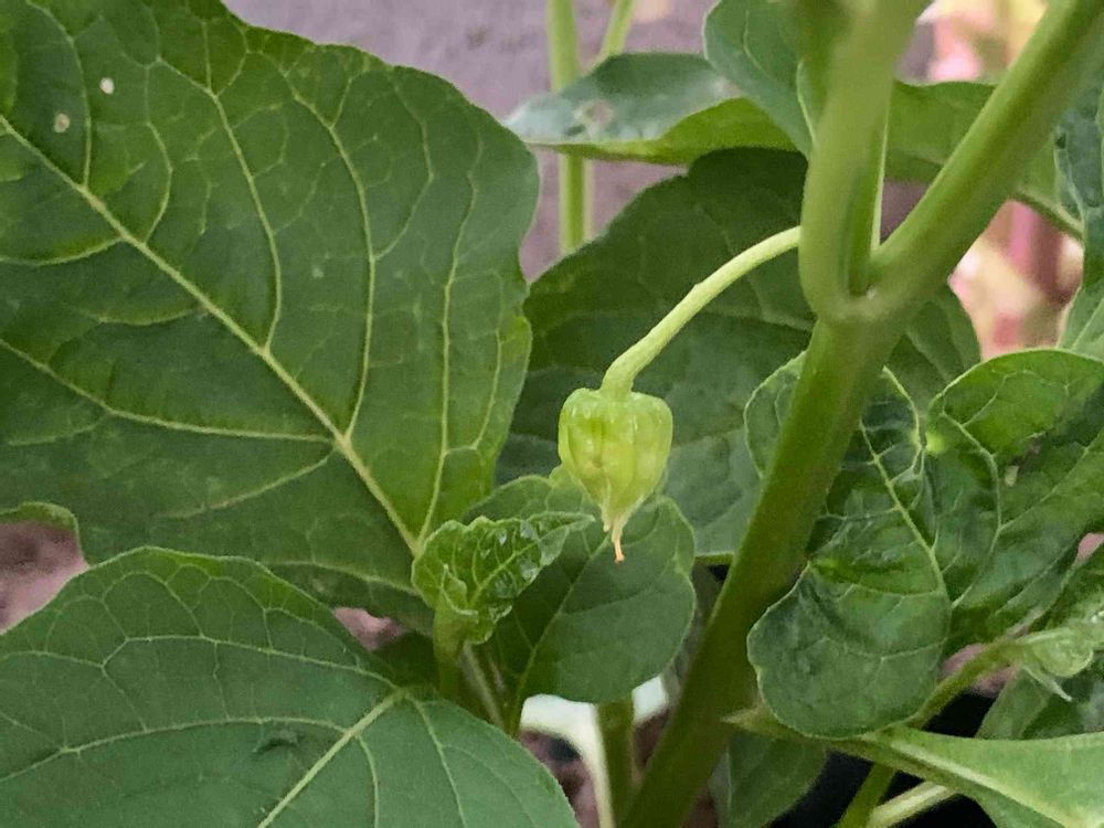 鬼灯は種を撒いてから芽が出るまで2年かかる。芽が出た年と去年は、花が咲いたけど実はならなかった。今年は鬼灯が見られるかなぁ。期待しちゃう。