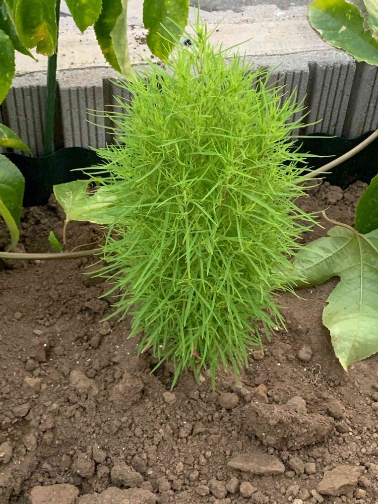 苗を買ってきたコキア。順調に育ってる。秋になって、周りの草花が寂しくなった頃、赤々とした箒草がお散歩の人達を楽しませてくれるといいなぁ。