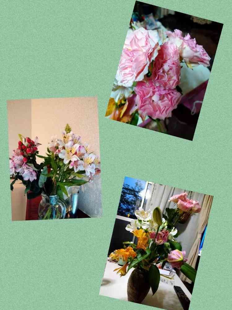 お店のお花と、頂いたお花💖 ユリ、アストロメリア、薔薇 皆、可愛い😻🥰💖