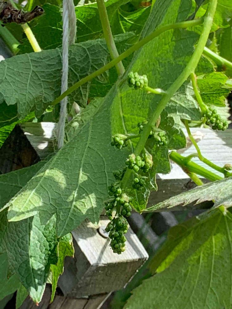 収穫まであと何ヶ月かな?のブドウ(笑)貰った木で、今年初めて実をつけるので成ってみるまで何の種類なのかわからない(笑)