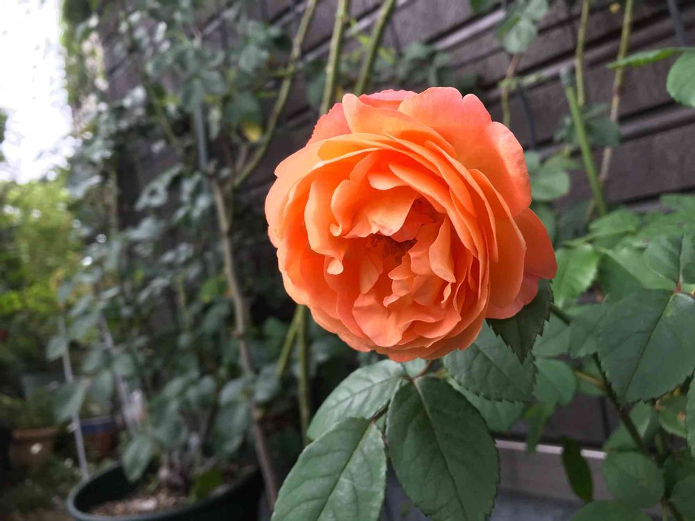 コンパクトな株だけど、エマさんが咲くと庭のこの一角がグッと華やぎます🌹印象的なオレンジ🧡
