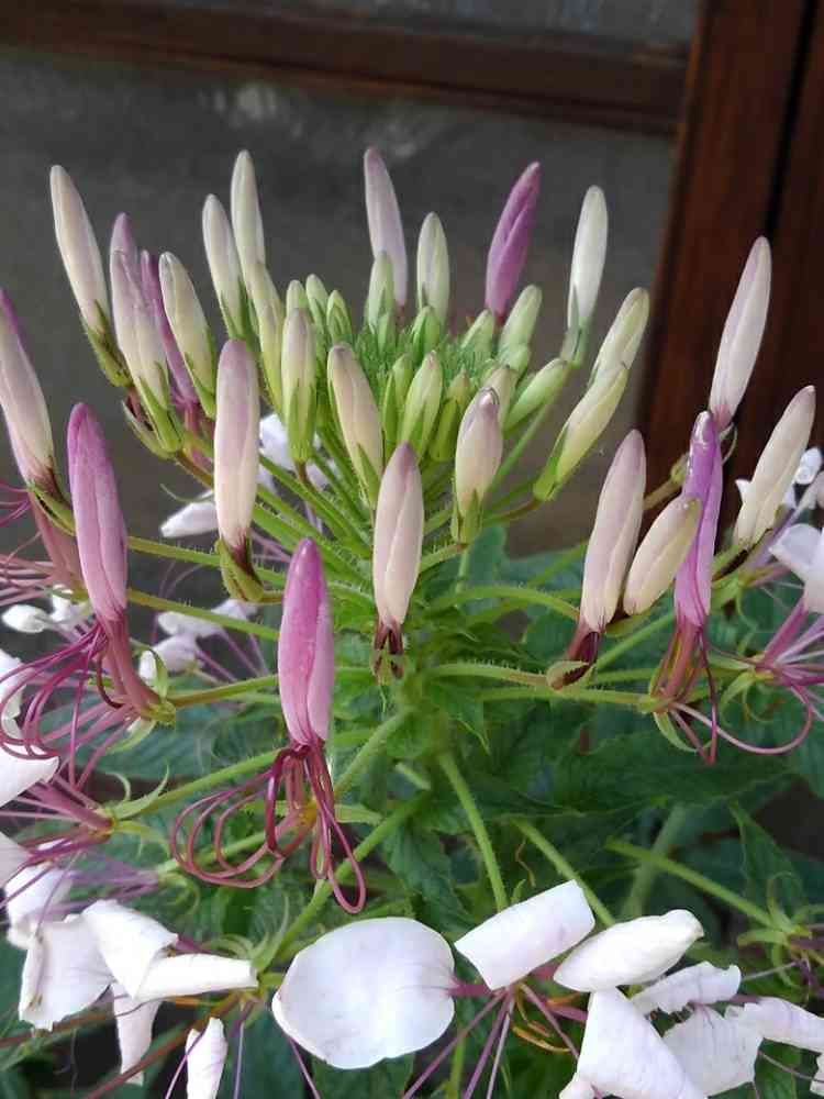 今日クレオメpicしました。トゲは無く、ねばねばの不愉快なさわり具合でした。😄🐈💖💕💕
