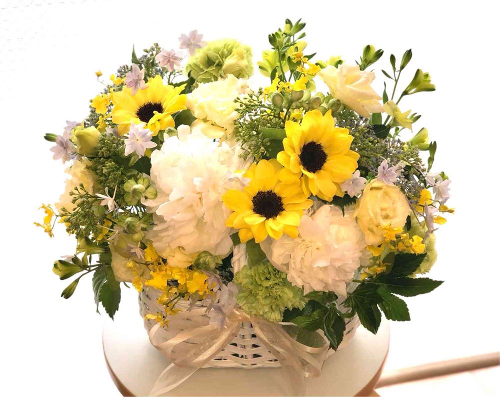 隅田の花火という紫陽花、芍薬、向日葵など季節のお花をたっぷりと挿しました。