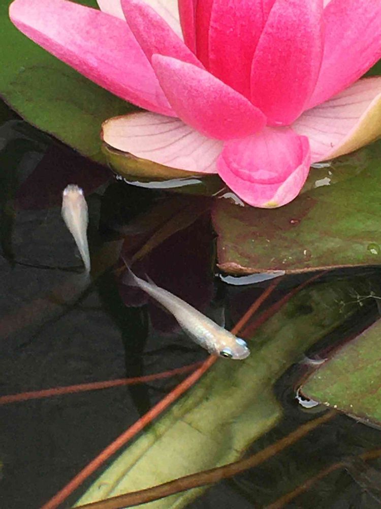 お出かけ先,睡蓮とメダカ♬,花のある暮らしの投稿画像