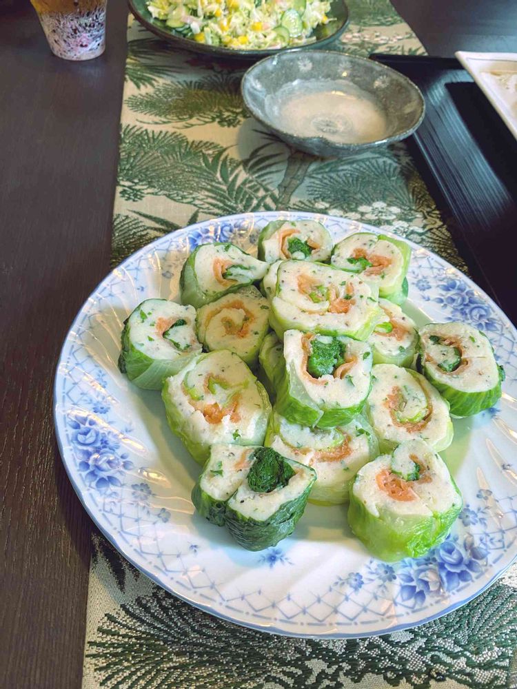 ポテトとスモークサーモンのレタス巻きなんです。サラダ🥗ですね〜