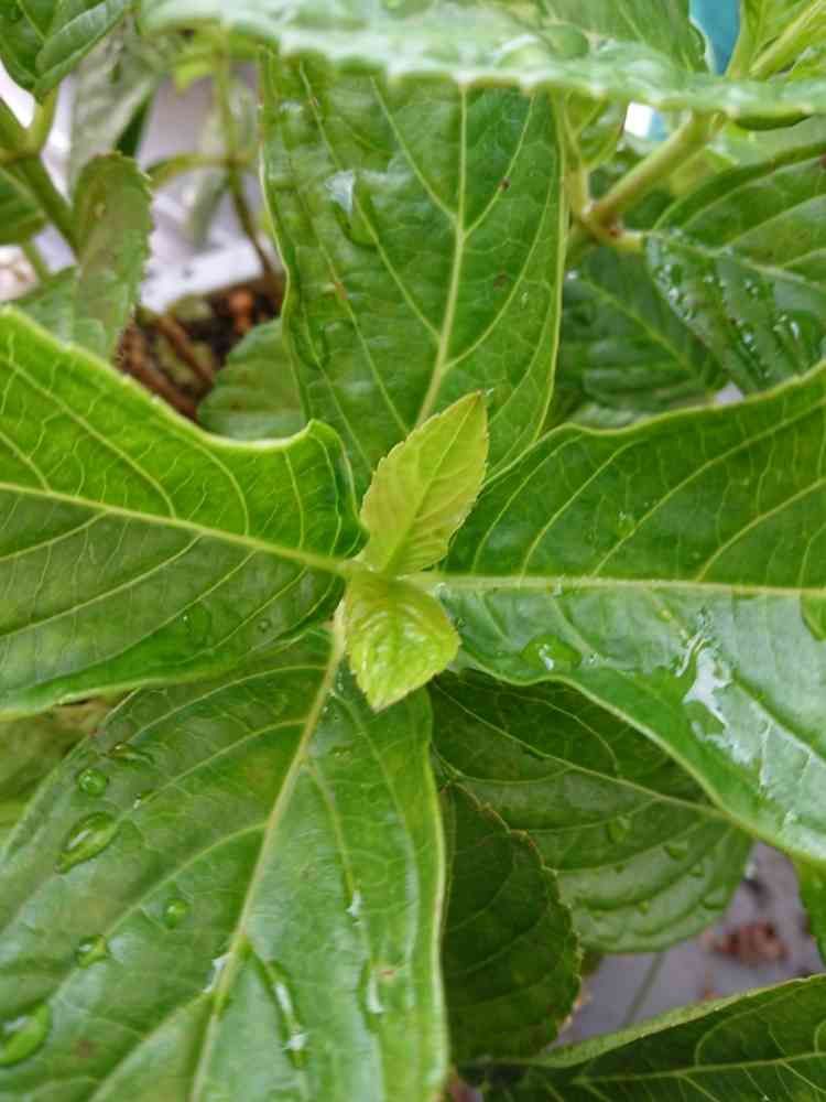 鉢植え5年目の紫陽花、こんぺいとうですが、どうやらひとつも花芽が付いていません。