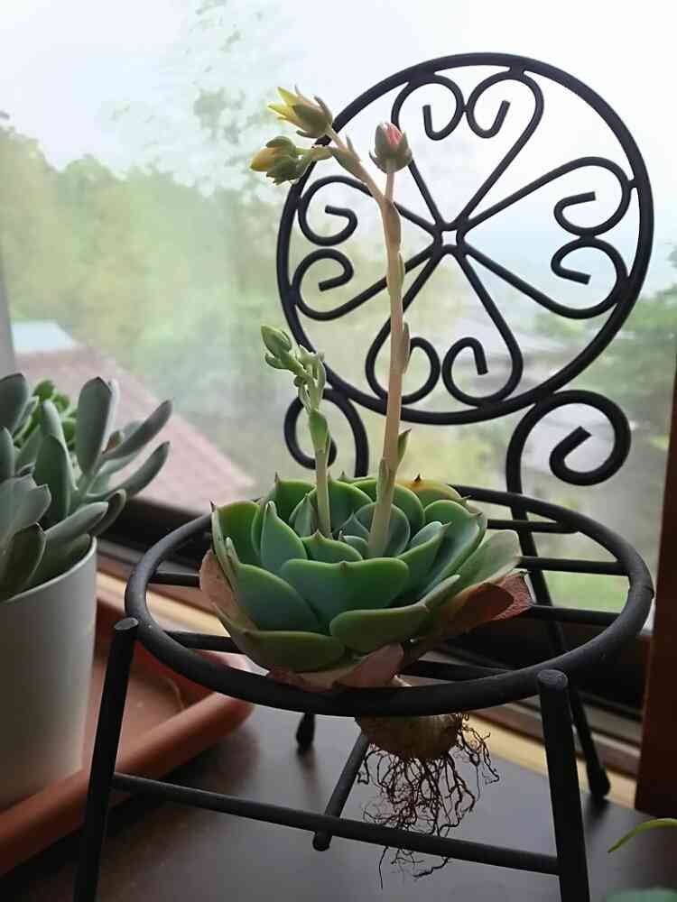 素敵な花台に七福神様、鎮座されていらっさる💕そろそろ土からの栄養欲しいよね