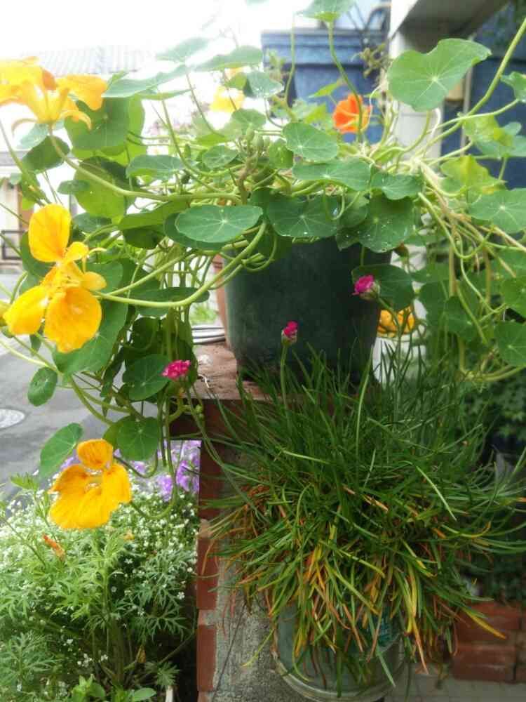 可愛らしい花同士が並んで咲いて、いいティータイムの景色になりそう。