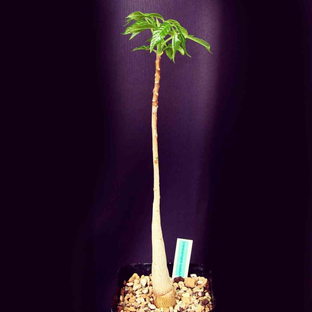 センダン科の高木でジンバブエなどに生息。成木は普通の木になるようですが、発芽〜若木のうちは根元が太りボトルツリー型に育ちます。しばらくコーヒーの木のような葉が出ますが成長してくると複葉が出始めます。マホガニーと同じセンダン科で、本種も◯◯マホガニーという呼び名が幾つかあり質の良い材が採れるとの事。