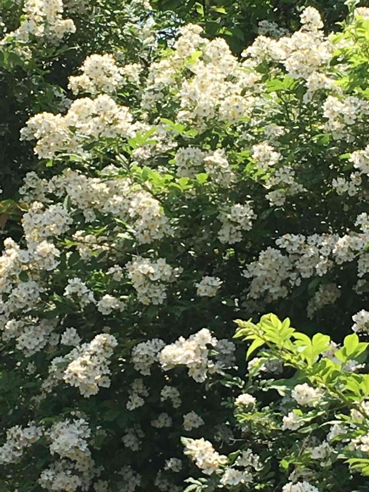 家の前の私道に咲き乱れる野イバラ。秋には真っ赤な実をクリスマスリースに使います❤️