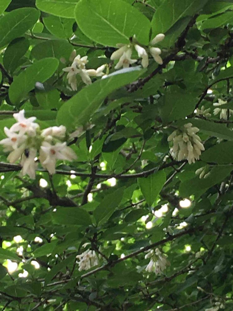 エゴノキは花首が少し長くて垂れていますよね。花首は長く無いので、でも仲間かなー😊