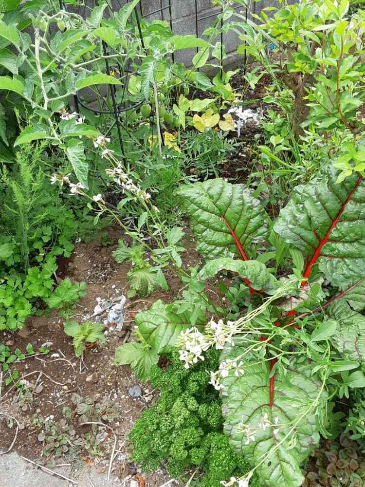 スイスチャードの赤い茎と、ルッコラの花が可愛い❤️