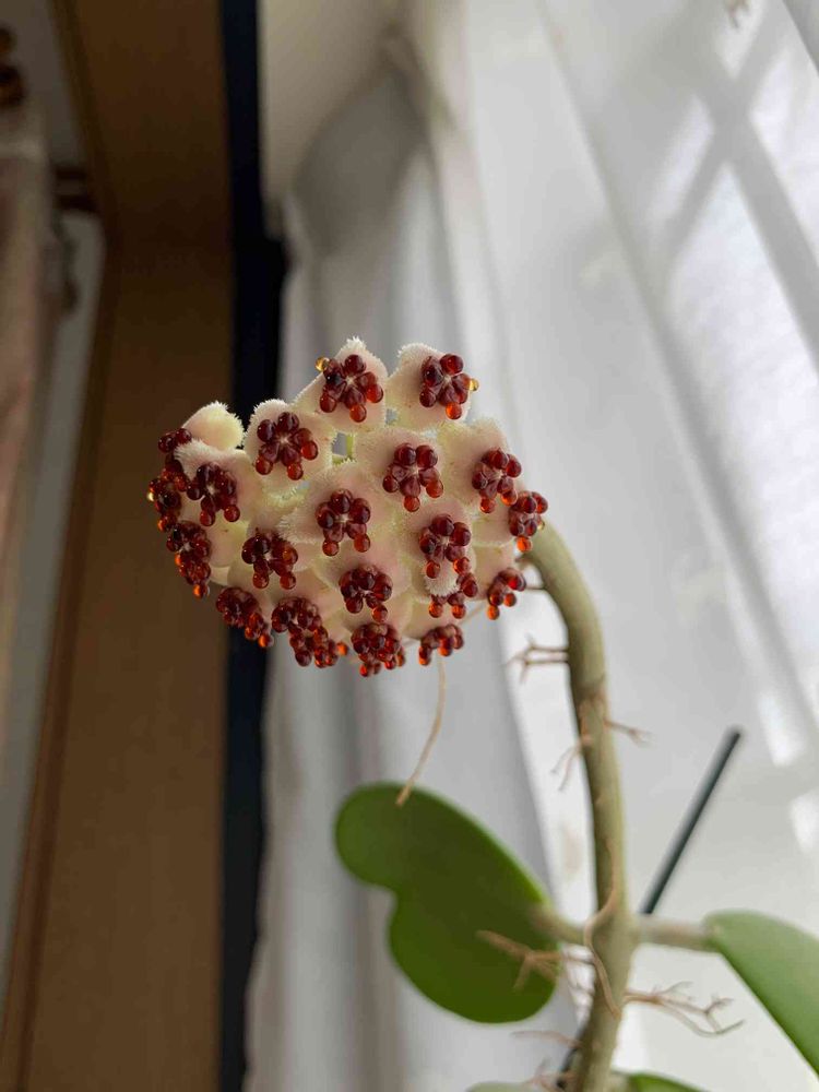 ハートの形の一枚の状態で貰って、グングン成長していきこの花も2回目の開花で今になってなんで花だろう?と、スッキリしました。❤️ホヤカーリー 覚えておきます。