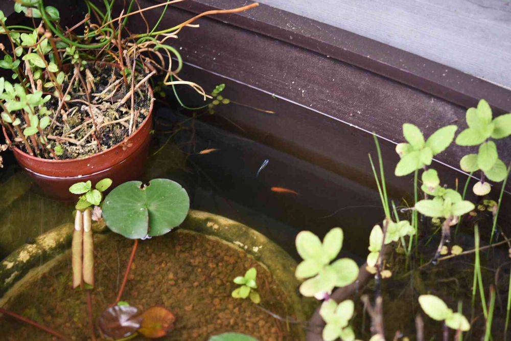 軒下ビオ。今年はカラフルなメダカを追加しましたよ♪