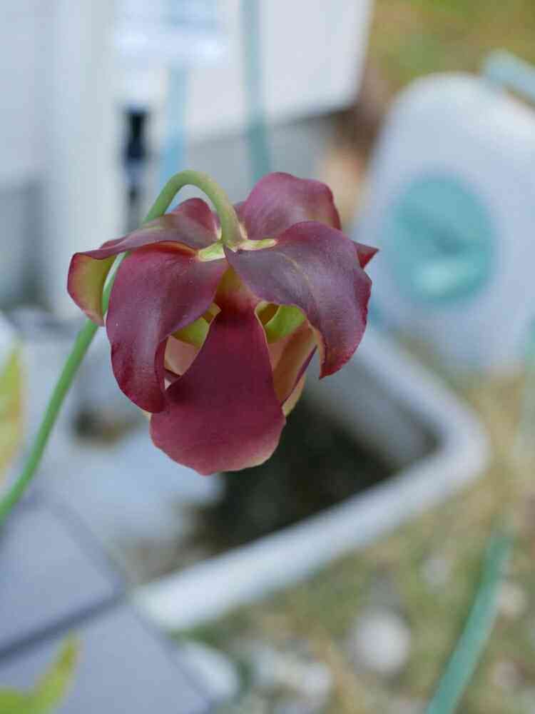 初めて買ったサラセニアで、プルプレア系の交配種だと思われます。